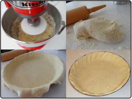 4) Étaler la pâte au rouleau à pâtisserie sur un plan de travail fariné. Placer la pâte dans une platine graissée.
